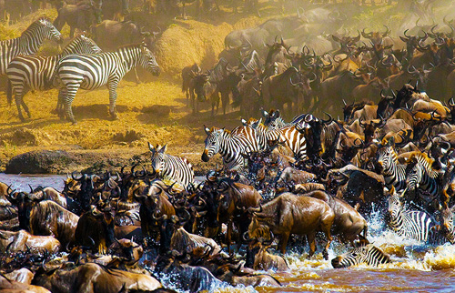 Serengeti Wildebeests Migration is a display of natural wonders with over two million wildebeests, zebras, and antelope traveling over 450 miles acros...